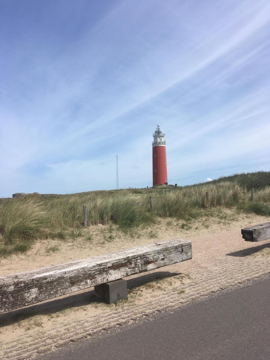 De vuurtoren in De Cocksdorp. Beklim de 118 treden en ga 6 verdiepingen naar boven. Best een eind, maar dan heb je ook wat. Je kunt de zee aan drie kanten van de toren bekijken. Ook heb je een goed zicht op Texel zelf en op buureiland Vlieland.
